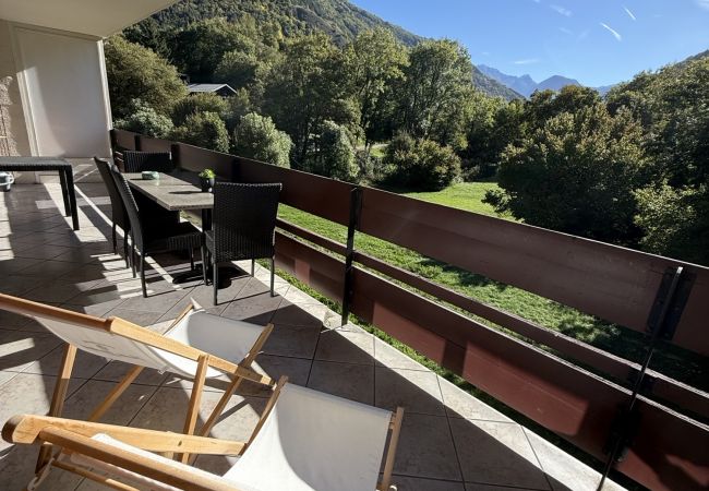 Appartement à Salins-les-Thermes qui possède 1 chambre(s) et Capacité pour 2 personnes. Logement de 42 m² confortable et très lumineux, situé en au pied des pistes de ski, avec vue sur la montagne et le jardin. La location se trouve à 27 m des pistes de ski "Val Thorens", 3 km du supermarché "Carrefour Moutiers", 3 km de la gare "Gare Moutiers Salins", 5 km des thermes "Salins Les Thermes", 12 km des pistes de ski "Courchevel", 15 km des pistes de ski "Meribel" et il est situé dans une zone tranquille zone et dans la montagne. Elle dispose de ascenseur, 11 m² de terrasse, lave-linge, fer à repasser, accès internet (wifi), chauffage central, parking extérieur même bâtiment, 1 Télévision, tv satellite (Langues: Anglais, Français). La cuisine indépendante, à vitrocéramique, est équipée avec réfrigérateur, micro-ondes, four, lave-vaisselle, vaisselle/couverts, ustensiles/cuisine, cafetière, grille pain et bouilloire.